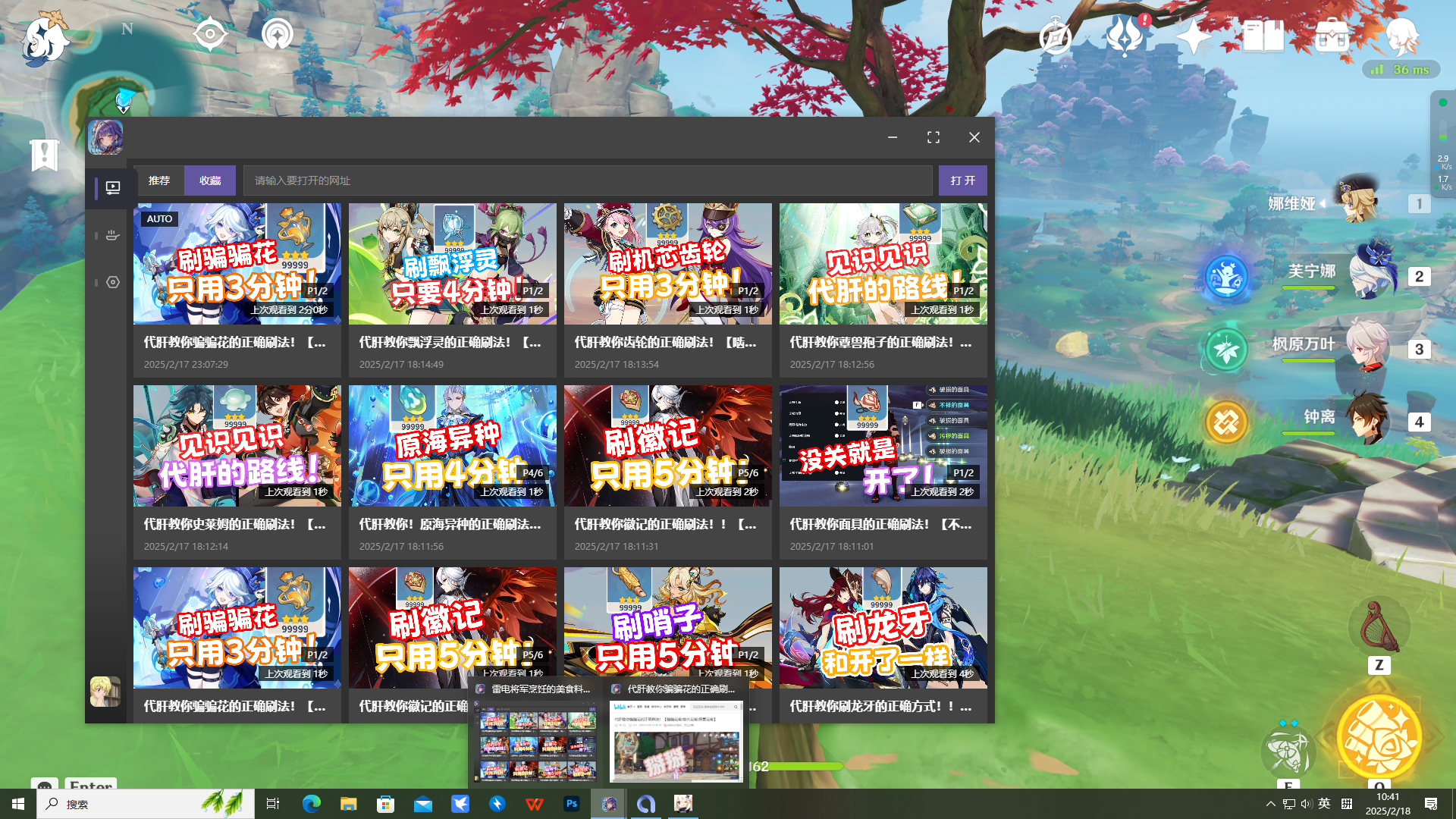 - 在底部任务栏「雷电将军」的图标堆叠里点击视频窗口。